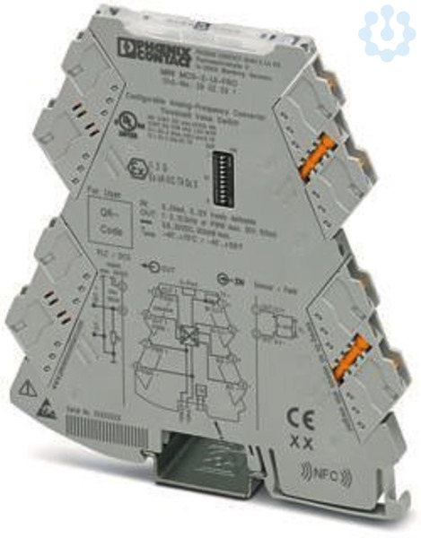 Analog-Frequenzwandler mit Grenzwertfunktionalität und steckbarer Anschlusstechnik zur Umsetzung von Normsignalen in Frequenz- oder PWM-Signale. Konfigurierbar über DIP-Schalter oder mittels Software. Schraubanschlusstechnik, Standardkonfiguration.