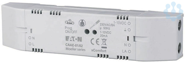 Der Analogaktor empfängt, schaltet ein Relais und steuert eine Steuerspannung 1-10VDC für Dimmer und Elektronische Vorschaltgeräte (EVG) von Leuchstofflampen. Die Versorgung erfolgt über das Netz. Eingebaut wird das Gerät in der