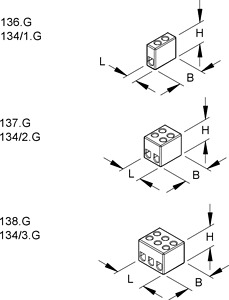 Anschlussklemme nach DIN EN 60998, ohne Befestigungsbohrungen, halogenfrei. Die Anschlussklemme muß nicht lagefixiert werden. Abmessungen (ca. Maße) H x B x L