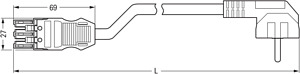 konfektionierte Übergangsleitung. Buchse/SCHUKO-Stecker. 3-polig. Kod. A. H05VV-F 3G 1,5 mm². 1 m. 1,50 mm². schwarz