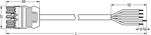 konfektionierte Anschlussleitung. Eca. Buchse/offenes Ende. 5-polig. Kod. A. H05VV-F 5G 2,5 mm². 4 m. 2,50 mm². weiß