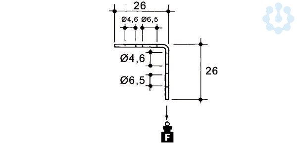 Befestigungslochungen je Schenkel : 1 x Ø 4,6 mm und 1 x Ø 6,5 mm