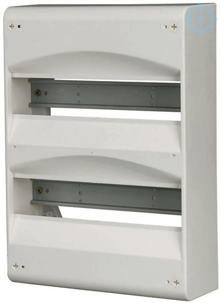 Aufputz-Kleinverteiler BC-A ohne Tür, 2-reihig, 26 TE, Schutzklasse 2, Schutzart IP30, stabiles DIN-Schienen-Traggerüst mit Längsverstrebungen, Null- und Schutzleiterklemmen mit solider Schraubtechnik, fingergeschützt, FI-N-Klemme BCZ-...-KL4 optional erhältlich, Steckplätze für FI-N-Klemme am Traggerüst, sehr gut lesbare Stromkreis-Nummerierung, fester Bestandteil der Berührungsschutzabdeckung, Verschlüsse plombierbar, Tür optional nachrüstbar mit Schloss, Türanschlag wechselbar von rechts auf links, RAL 9010