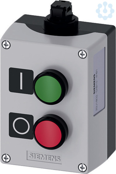 AS-Interface-Gehäuse für Befehlsgeräte, 22 mm, rund, Gehäusematerial Kunststoff, Gehäuseoberteil grau, 2 Befehlsstellen Kunststoff, Vertiefung für Schilder, B=Drucktaster grün, Schild: I, 1S, Federzuganschluss, A=Drucktaster rot, Schild: O, 1Ö, Federzuganschluss, Bodenbefestigung, Durchdringungstechnik oben, Schilder beigelegt Gehäuse SIRIUS ACT für die Montage der 22,5 mm Befehls- und Meldegeräte bei räumlich getrennter Anordnung von Steuereinheiten und Schaltschränken.Unter dem Markennamen SIRIUS ACT bietet Siemens ein einzigartiges Portfolio an Befehls- und Meldegeräten mit weltweiten Produkt-Zulassungen in vier modernen Designreihen aus robustem Echtmetall und hochwertigem Kunststoff.Das innovative Aufschnappkonzept vereinfacht die Montage so weit, dass dafür nur eine Hand und kein Spezialwerkzeug erforderlich ist. Als Montagebohrungen genügen nutfreie Löcher, da bereits ein 100%iger Verdrehschutz integriert ist.Dank der durchgängig hohen Schutzart sind die robusten Geräte industrietauglich und für den Au