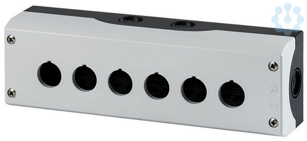 Aufbaugehäuse, Gehäuse: Kunststoff, mit Edelstahlschrauben, Einbaustellen: 6, Leitungseinführung: rückseitig: 2 x M20, oben: 2 x M20, seitlich: 2 x M20/M25 (je Seite 1 x), Schutzart: IP66, Farbe RAL-Wert: RAL 7035, Farbe: Gehäuseunterteil anthrazit, Anbindung an SmartWire-DT: nein, verwendbar für: (Leucht)-Drucktasten, (Leucht)-Wahltasten, Schlüsseltasten, Leuchtmelder, NOT-HALT-/NOT-AUS-Tasten mit gelbem Schild