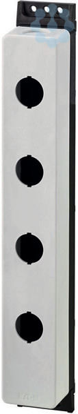 Aufbaugehäuse, Gehäuse: Kunststoff, mit Edelstahlschrauben, Einbaustellen: 4, Leitungseinführung: rückseitig: 1 x M20, seitlich: 2 x M20 (je Seite 1 x), Farbe RAL-Wert: RAL 7035, Farbe: Gehäuseunterteil anthrazit, Anbindung an SmartWire-DT: nein, verwendbar für: 4 x 22,5, verwendbar für: (Leucht)-Drucktasten, (Leucht)-Wahltasten, Schlüsseltasten, Leuchtmelder, NOT-HALT-/NOT-AUS-Tasten mit gelbem Schild, Flat Rear Kontakte M22-FK?, Flat Rear LED-Elemente M22-FLED-?