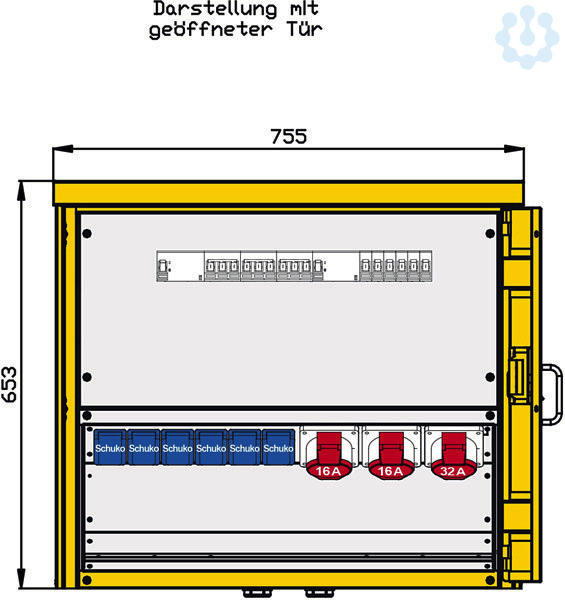 mit Leitungsschutzschalter (MCB) 3P 32A -C- 2 CEE-Anbaudosen 16A 5P 400V 6h