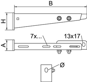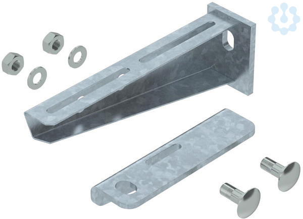 Ausleger zur Montage an Hängestielen oder als Wandausleger für die nach DIN 4102 geprüfte Kabelverlegung oberhalb angehängter Brandschutzdecken. Der zur Gewindestangensicherung der Auslegerspitze erforderliche Anschlusswinkel inklusive Schrauben ist im Lieferumfang enthalten. Der Anschlusswinkel ist fertig mit der Auslegerspitze verschraubt.