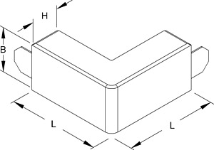 Außeneck 90°, mit Laschen, die Befestigung erfolgt durch die angrenzenden Deckelstücke. für Elektroinstallationskanal : HKL4060.8 Abmessungen (ca. Maße) H x B