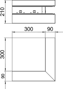 Ausseneck zur Richtungsänderung der Geräteeinbaukanäle GEK-S mit Systemöffnung 80 mm.