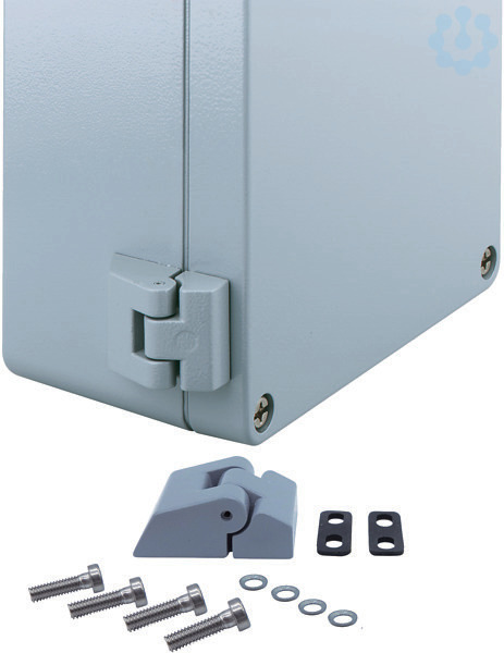 Zum Umrüsten des Gehäusedeckels zur Klapptür. Inkl. 2 Scharnieren, Befestigungsschrauben und Bohrschablone, für AL/ALR 1010, 1212, 1616, 2212, 2320, 2616, 2823, 3323, 3616, für ALS 1515, 2011, 2020, 2720, 3927