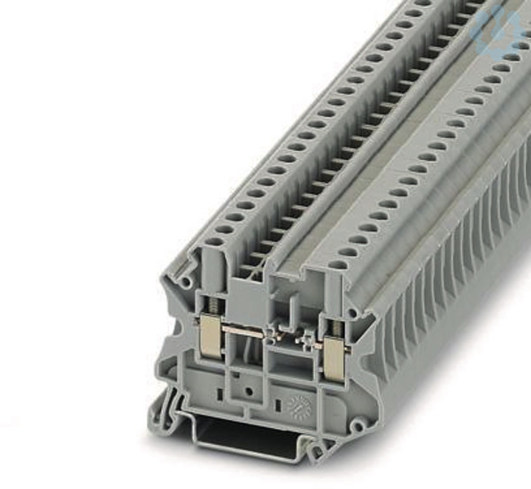 Bauelementreihenklemme, zum Einbau von selbst wählbaren Bauelementen, Nennspannung: 800 V, Nennstrom: 0,5 A, Anschlussart: Schraubanschluss, Anzahl der Anschlüsse: 2, Querschnitt: 0,14 mm² - 6 mm²,