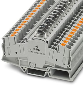 Bauelementreihenklemme, mit integrierter Diode P1000M, Anschlussart: Push-in-Anschluss, Querschnitt: 0,5 mm² - 10 mm² , AWG: 20 - 10, Breite: 8,2 mm, Farbe: grau