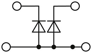 Bauelementreihenklemme, mit integrierter Diode 1N4007, Der max. Strom wird durch die Diode bestimmt. Eingebaut: Diode 1N 4007, Sperrspannung: 1300 V, Dauergrenzstrom: 0,5 A., Nennspannung: 500 V, Nennstrom: 0,5 A, Anschlussart: Push-in-Anschluss, Anzahl der Anschlüsse: 4, Querschnitt: 0,14 mm² - 4 mm²,