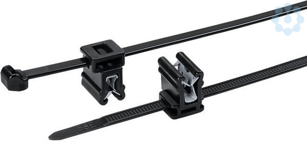 2-teiliger Kabelbinder mit EdgeClip, vormontiert. Der Kopf des Binders kann in optimale Bündelposition gebracht werden. Typ EC9, EC10, EC21 und EC22 für Bündeldurchmesser ab 1 mm. Für Kanten von 1 - 3 mm. Elemente aus der EdgeClip-Serie sind eine sehr gute Alternative überall dort, wo Lochbohrungen und Schweißbolzen nicht realisierbar und Kleber aufgrund höherer Temperaturen nicht einsetzbar sind. Anwendung findet die EdgeClip-Familie zur Bündelung und Befestigung von Kabelbäumen und Schläuchen überwiegend in der Automobil-, Bau- und Elektroindustrie sowie in der Kabelbaumfertigung.