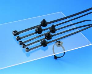 2-teiliger Kabelbinder mit Lamellenfuß, vormontiert. Der Kopf des Binders kann in die optimale Bündelposition gebracht werden. Einfache Montage, werkzeugfrei. Schützt vor eindringendem Schmutz und Staub durch Teller. Diverse Blechdicken finden Verwendung mit einem einzigen Lamellen-Fußteil. Auch für Sacklochbohrungen mit Gewinde. Diese Befestigungsbinder finden überall dort Anwendung, wo rationelles Arbeiten verbunden mit hohen Haltekräften gefordert ist. Sie sind z. B. im Schaltschrank- und Fahrzeugbau einsetzbar.