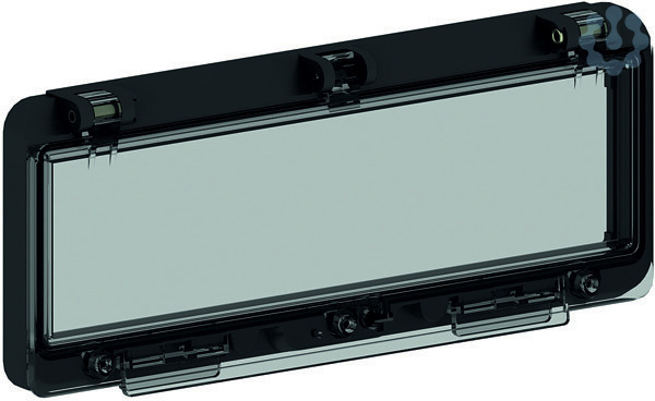 Gerätefarbe: Gehäuse schwarz RAL 9005, Betätigungsklappe rauchtopas,