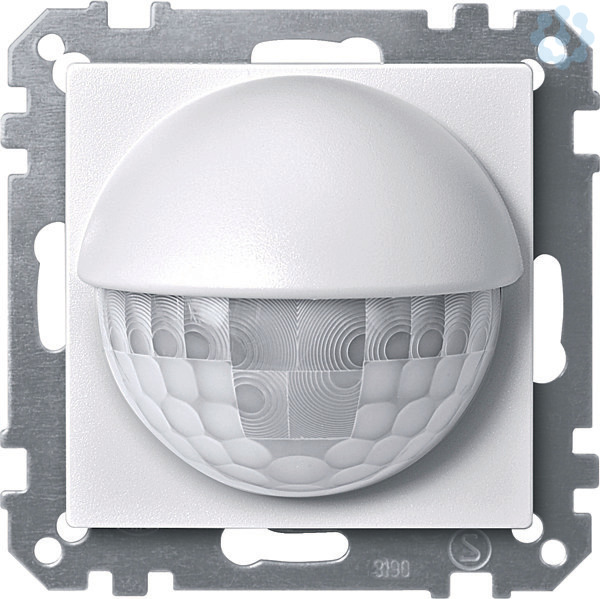 Im Design System M. Bewegungsmelder für den Innenbereich mit Unterkriechschutz. Bei Erfassen einer Bewegung wird ein durch die Programmierung definiertes Datentelegramm gesendet. Mit integriertem Busankoppler. Für Wandmontage in eine 60er-Einbaudose, optimaler Einsatz bei 2,2 m. Softwarefunktionen KNX: Fünf Bewegungsblöcke: Bis zu vier Funktionen können je Block ausgelöst werden. Telegramme: 1 Bit, 1 Byte, 2 Byte. Normalbetrieb, Master, Slave, Sicherheitspause, Sperrfunktion. Empfindlichkeit, Helligkeit und Treppenlichtzeit lassen sich über die ETS oder das Potentiometer einstellen. Zwei Bewegungssensoren: Empfindlichkeit und Reichweite lassen sich für jeden Sensor separat einstellen. Lernbare Treppenlichtzeitxx Erfassungswinkel: 180 Grad. Reichweite: 8 m rechts/links, 12 m nach vorne (bei einer Montagehöhe von 2,20 m). Montagehöhe: 2,2 m oder 1,1 m bei halbierter Reichweite. Anzahl der Ebenen: 6. Anzahl der Zonen: 46. Anzahl der Bewegungssensoren: 2, sektorbezogen einstellbar. Empfindlichkeit: stufenlos eins