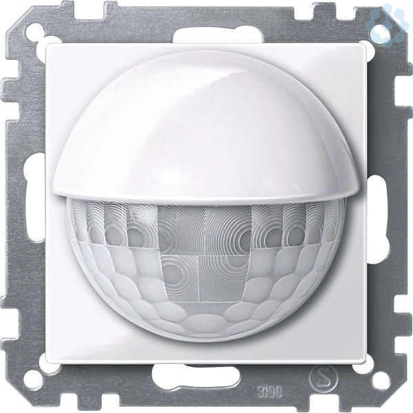 Im Design System M. Bewegungsmelder für den Innenbereich mit Unterkriechschutz. Bei Erfassen einer Bewegung wird ein durch die Programmierung definiertes Datentelegramm gesendet. Mit integriertem Busankoppler. Für Wandmontage in eine 60er-Einbaudose, optimaler Einsatz bei 2,2 m. Softwarefunktionen KNX: Fünf Bewegungsblöcke: Bis zu vier Funktionen können je Block ausgelöst werden. Telegramme: 1 Bit, 1 Byte, 2 Byte. Normalbetrieb, Master, Slave, Sicherheitspause, Sperrfunktion. Empfindlichkeit, Helligkeit und Treppenlichtzeit lassen sich über die ETS oder das Potentiometer einstellen. Zwei Bewegungssensoren: Empfindlichkeit und Reichweite lassen sich für jeden Sensor separat einstellen. Lernbare Treppenlichtzeitxx Erfassungswinkel: 180 Grad. Reichweite: 8 m rechts/links, 12 m nach vorne (bei einer Montagehöhe von 2,20 m). Montagehöhe: 2,2 m oder 1,1 m bei halbierter Reichweite. Anzahl der Ebenen: 6. Anzahl der Zonen: 46. Anzahl der Bewegungssensoren: 2, sektorbezogen einstellbar. Empfindlichkeit: stufenlos eins