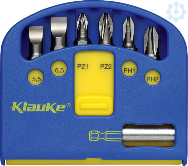 Für Antrieb 1/4 Zoll (6,3) DIN3126. In stabiler Kunststoff-Box. Inkl. Magnethalter und Bits 1,0 x 5,5 mm / 1,2 x 6,5 mm / PZ 1 / PZ 2 / PH 1 / PH 2.