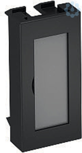 Blindabdeckung mit Beschriftungsfeld für eine halbe Modulbreite geeignet als Abdeckung von Leerfeldern in Geräteeinbau-Kanalsystem Rapid 45 und Installationssäulen ISS mit einer 45mm Systemöffnung.