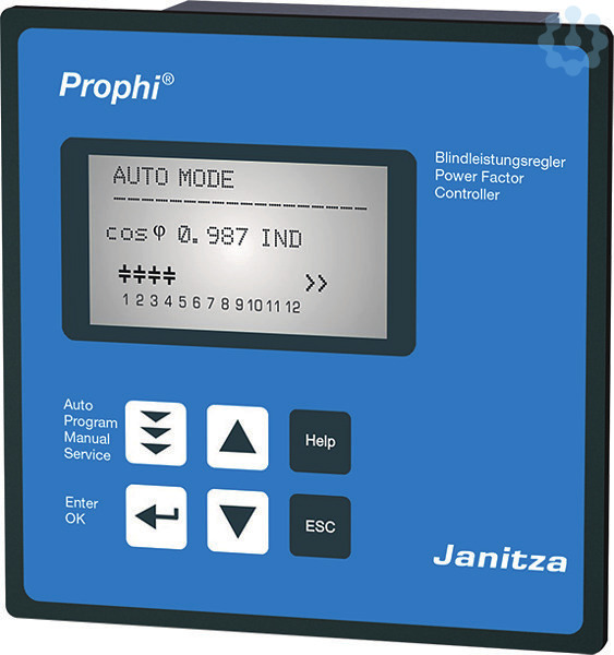 Blindleistungsregler für Fronttafeleinbau,Janitza Front und TypenschildMeßspannung