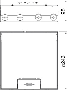 Quadratische Einbaueinheit für den Einsatz in trocken gepflegten Hohlböden und Estrichböden im Innenbereich.