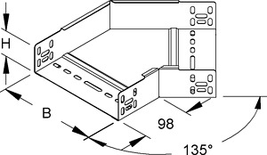 Bogen 45°, mit ungelochten Seitenholmen, mit Verbinderlochung für den Anschluss, für Kabelrinnen, zur Herstellung von 45° horizontal abgewinkeltem Kabelrinnenverlauf, mit integrierten Stoßstellenverbindern, einschließlich feuerverzinkten anteilmäßigem Befestigungszubehör. VDE zertifiziert! Zur Verwendung im Funktionserhalt bitte Zusatzvorschriften beachten!