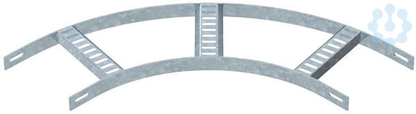 90° Bogen für Schiffsbau-Kabelleiter Typ SL 42 mit der Seitenhöhe 25 mm, mit eingeschweißten, nach unten offenen und gelochten Trapezsprossen.