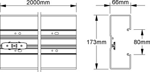 Gerätekanalunterteil, einzügig, symmetrisch, mit zwei durchgehenden Aufnahmeprofilen im Rückenteil zum Aufstecken von max. zwei Trennwänden sowie durchlaufender Perforation im Kanalrücken, einschließlich einer Kanalkupplung KUV je 2 m Lieferlänge, Stoßstellenverbinder BSV65/170 zur exakten Verbindung der Kanalunterteile bitte gesondert bestellen, Gerätemontage im Leitungszug mit einrastbarer Gerätedose für Einbauprogramme mit 80 mm Abdeckrahmen, Geräteeinbau ohne Lochblenden, die Sichtflächen sind mit einer Schutzfolie geschützt, innenliegendes Gerätekanaloberteil BO80. ... muss gesondert bestellt werden. VDE zertifiziert! Abmessungen (ca. Maße) H x T : 173 x 66 mm Deckelöffnung