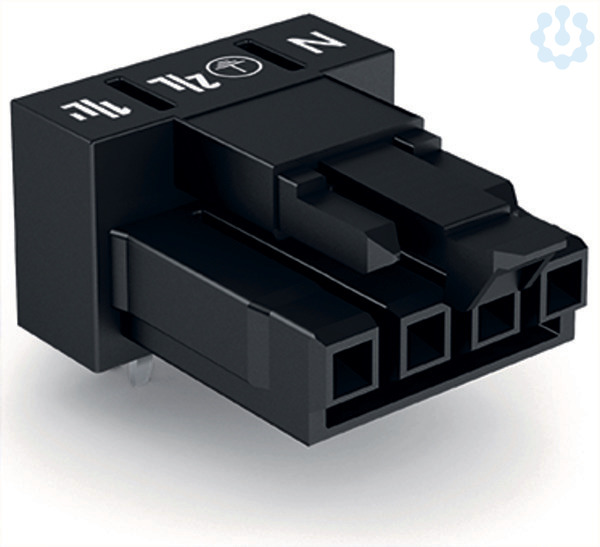 Buchse für Leiterplatten. abgewinkelt. 4-polig. Kod. A. schwarz