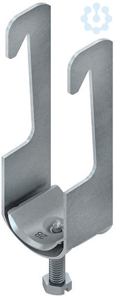 Bügelschelle, für Winkeleisen, mit bandverzinkter Stahldruckwanne nach DIN EN 10346, Bügel tauchfeuerverzinkt nach DIN EN ISO 1461, Verwendung auch an ungleichschenkligem Winkelstahl sowie U-Eisen mit max. einer Schenkellänge von 40 mm, Gegenwannen (GWU/GWS...) und Doppelwannen (DW...) müssen gesondert bestellt werden.