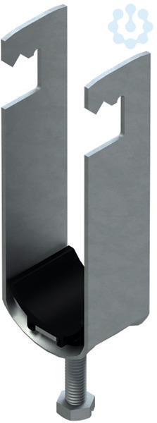 Bügelschelle, mit gezahntem Schellenfuß, mit Kunststoffdruckwanne aus PP, halogenfrei, Wanneneinlage bandverzinkt nach DIN EN 10346, Bügel tauchfeuerverzinkt nach DIN EN ISO 1461, für Flacheisen mit 4-12 mm Dicke, außerdem einsetzbar an vorhandenen Stahlkonstruktionen, Gegenwannen (GWU/GWS...) und Doppelwannen (DW...) müssen gesondert bestellt werden.
