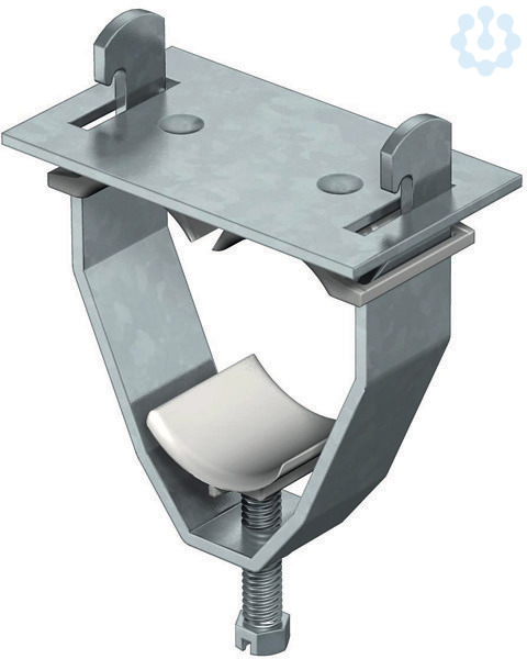 Schellenkörper, Schraube und Gegenplatte aus Stahl tauchfeuerverzinkt, Druck- und Gegenwanne aus Polypropylen, halogenfrei, lichtgrau RAL 7035. Lieferung komplett mit Gegenplatte und Gegenwannen.