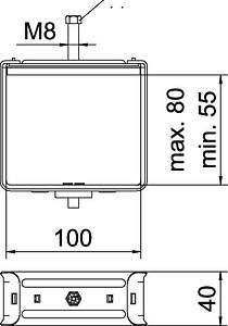 Schelle und Schraube aus Stahl tauchfeuerverzinkt, Senkschraube aus Edelstahl rostfrei, Gleitmutter aus Stahl galvanisch verzinkt.