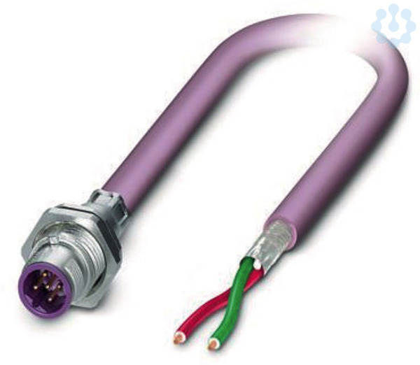 Bussystem-Einbaustecker, PROFIBUS, 2-polig, M12, geschirmt, B-kodiert, Hinterwand-/Schraubmontage mit M16-Gewinde, mit 5 m Buskabel, 2x 0,25 mm²