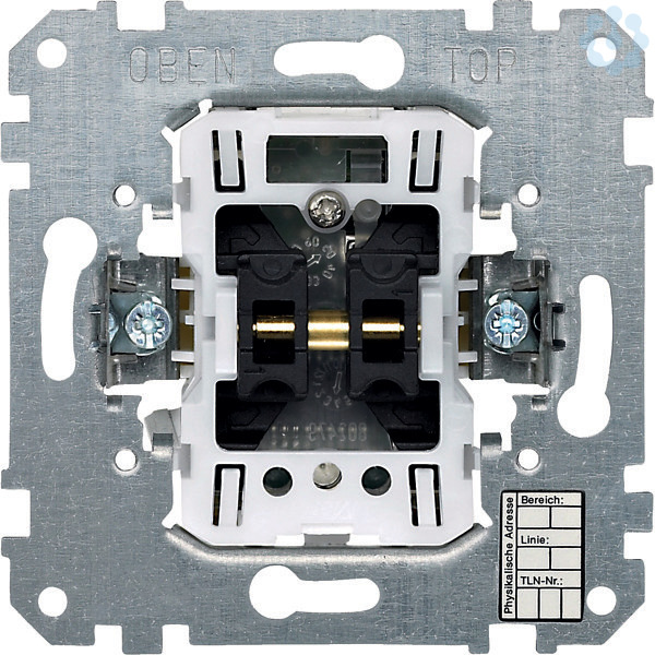 Die Wippe für Serienschalter. Wippe für Rollladenschalter und -taster aus Systemm, System Design und System Fläche können auf den Busankoppler-Einsatz 2fach aufgesteckt werden. Als Sonderanfertigung können auch die Schalterprogramme AQUADESIGN und AQUACLASSIC für den Busankoppler-Einsatz 2fach angepasst werden. Mit integriertem Busankoppler. Bei der Ausführung mit Mittelstellung können die Wippen nach oben und nach unten betätigt werden (Dreistellungswippe). Bei der Ausführung ohne Mittelstellung werden nur bei Betätigungen der unteren Wippenhälfte Telegramme erzeugt (Zweistellungswippe). Für die Montage in eine 60er-Installationsdose. Mit Taster und LED für den Programmiervorgang. Softwarefunktionen KNX: Für Artikelnummer 671298: Schalten. Umschalten. Dimmen. 1 Jalousiegruppe. Für Artikelnummer 671299: Schalten. Umschalten. Dimmen. 2 Jalousiegruppen. Ausführung: mit Mittelstellung.