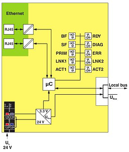 Axioline P-Buskoppler für PROFINET. Stellt Verbindungen zu PROFIBUS PA-Stromversorgungen und Axioline P-I/O-Modulen entlang dem AXIOLINE P-Lokalbus her. (Umfasst Stromversorgungs-Steckverbinder und Bussockelmodul)