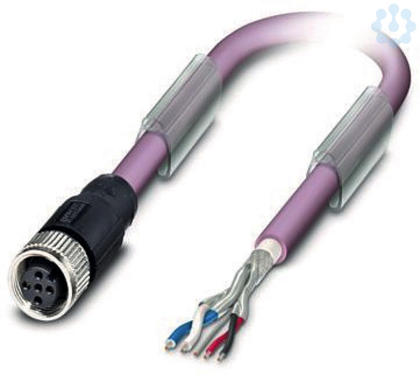 Bussystem-Kabel, CANopen®, DeviceNet?, 5-polig, PUR halogenfrei, violett RAL 4001, geschirmt, freies Leitungsende, auf Buchse gerade M12, Kodierung: A, Kabellänge: 1,45 m, mit Aderendhülsen