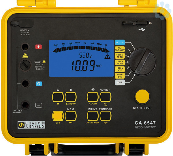 In seinem robusten, baustellentauglichen Gehäuse ist der CA 6547 das optimale Instrument für die quantitative und qualitative Prüfung von Isolationen. Gleichzeitig zum Isolationswiderstand zeigt der Prüfer auch Spannungen, Kapazitäten und Restströme an. Zusätzlich verfügt dieses Modell über einen Messwertspeicher und eine USB-Schnittstelle zur Gerätebedienung und Datenauswertung über die Software Megohmmeter.