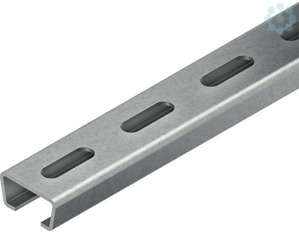 Anker-/Profilschiene Modell 2980, C-Profil mit schräg zulaufenden Seiten, gelocht. Passende Bügelschellen (B... und BK...).
