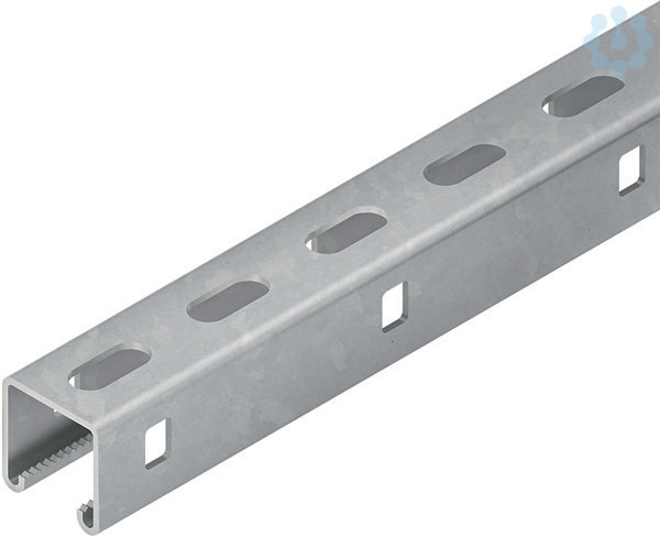 Anker-/Profilschiene Modell 2996Z, C-Profil mit Verzahnung, Boden und Seiten durchgehend gelocht. Gleitmutter GMZ M...-22 E5 und Schrauben bitte separat bestellen. Passende Bügelschellen (BU... und BUK...). In persönlichen Gefährdungsbereichen ist die Schutzkappe SKC 88/96 anzuordnen. Um ein problemloses Aufsetzen der Schutzkappe zu gewährleisten, ist ein Abstand von mind. 30 mm zum Profilende einzuhalten.