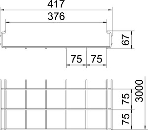 Gitterrinne in C-Form aus punktgeschweißten Stahldrähten mit der Seitenhöhe 50 mm.