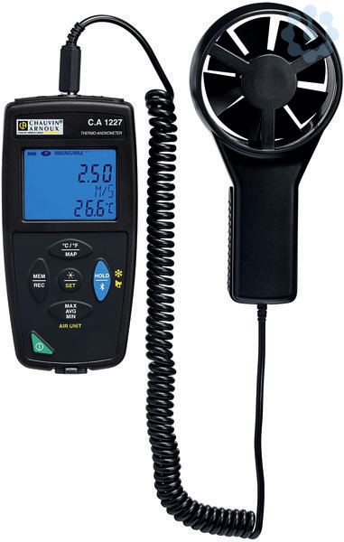Beschreibung Das C.A 1227 ist mit einer großen beleuchteten Anzeige ausgestattet, mit allen wichtigen für die Messung der Luftgeschwindigkeit und des Luftdurchsatzes wichtigen Funktionen wie Min, Max, Mittelwert, Hold und MAP-Kurvendarstellung, sowie mit umfassenden Speichermöglichkeiten. Mit den als Zubehör verfügbaren Luftkonen lassen sich Luftdurchsatzmengen direkt messen. Mit der gratis herunterladbaren Software Data Logger Transfer können die aktuellen und die gespeicherten Messdaten auf dem PC angezeigt, das Gerät konfiguriert und Berichte erstellt werden.