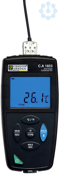 Beschreibung Das C.A 1823 ist ein kompaktes PT100 Kontakt-Thermometer mit Magnethalterung, das genaue, vielseitige und zuverlässige Messungen bei stationären und mobilen Einsätzen garantiert. Das Gerät verfügt über eine große beleuchtete Anzeige, über alle vor Ort benötigten Funktionen wie Min-, Max-Anzeige, Hold und es kann Messwerte manuell oder gemäß Programmierung speichern. Das Gerät ist über USB oder Bluetooth vernetzbar, so dass Alarme und ein Start der Werteaufzeichnung über die Software Data Logger Transfer programmiert werden können. Weitere technische Daten: - 1 Eingang für Pt100-, Pt1000-Fühler