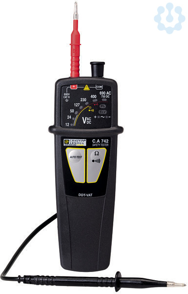 Beschreibung Der Spannungsprüfer (VAT) C.A 742 ist ein unverzichtbares Hilfsmittel für jeden Elektriker, um vor einem Eingriff in eine ans Netz angeschlossene Elektroanlage die Spannungsfreiheit zu prüfen. Er erfüllt die Norm IEC 61243-3 Ausg. 2 und kann daher bei allen Außen- und Innen-Anlagen der Kategorie 600 V CAT IV verwendet werden. Um bestimmte, in einigen Ländern geltende Normen und Vorschriften zu erfüllen, gibt es zwei Bestellnummern - mit und ohne IP2X-Zubehör. Der C.A 742 verfügt mit der ELV-LED, die blinkt, sobald eine Spannung von mehr als 50 VAC oder 120 VDC anliegt, über ein redundantes Sicherheitssystem. Beim umfassenden Selbsttest des C.A 742 erfolgt eine Prüfung der elektrischen Schaltkreise, der Stromversorgung, der Anzeigen und des einwandfreien Zustands der Messle