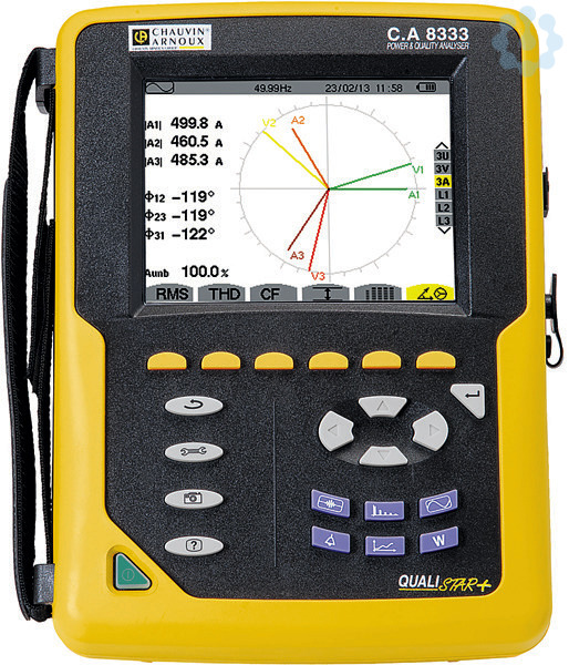 Der Qualistar+ C.A 8333 ist besonders geeignet für Wartungs- und Prüfdienste in industriellen und gewerblichen Anlagen. Er liefert ein sofortiges Abbild der wichtigsten Netzqualitätsparameter. Mit seinen Funktionen ist dieser Analysator besonders für die Wartung und Reparatur geeignet. Die komplette Energiebilanz einer Anlage lässt sich erstellen. Für die Dimensionierung von elektrischen Anlagen und für die Erkennung von Umschaltfehlern verfügt der C.A 8333 über einen Transienten-Modus, mit dem sich der Anlaufstrom über 4 Netzperioden ermitteln lässt. Das kompakte, handliche Gerät bietet zusätzliche Berechnungs- und Bedienfunktionen. Der C.A 8333 verfügt über jeweils 3 Spannungs- und Stromeingäng