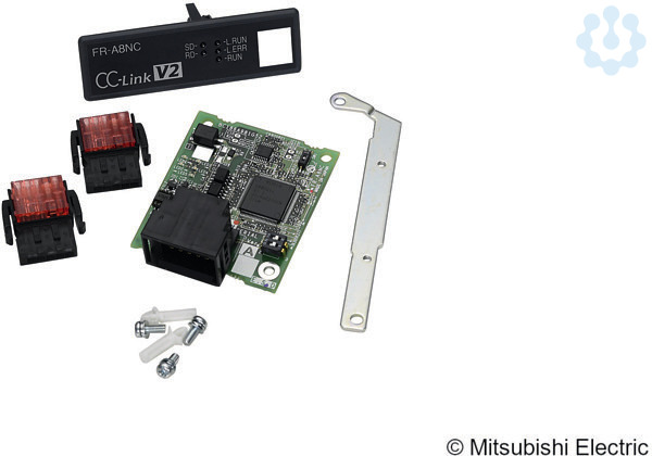 Optionskarte zur Integration eines Frequenzumrichters in ein CC-Link-Netzwerk. Maximale Übertragungsdistanz: 1200 m (bei 156 kBit/s)