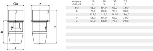 32A 5p (3P+N+PE) 500V (277/480 bis 288/500V) 7h IP44,