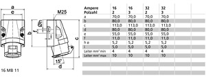32A 2p (2P)<50V grün 400Hz (20 bis 25 und 40 bis 50V) 3h IP44,